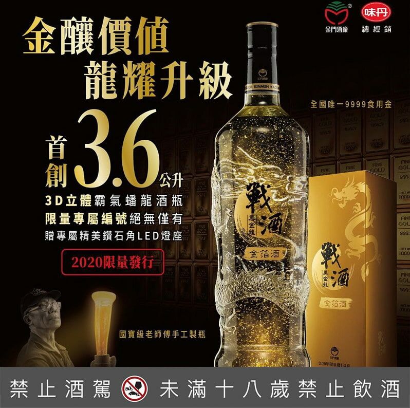 金門高粱 戰酒黑金龍金箔酒3.6L(3D立體蟠龍瓶身)
