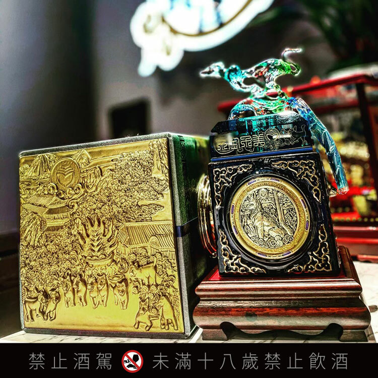 本產品乃金門酒廠2015年首度發行的系列性十二生肖玉璽酒之一,玉璽代表著一國領導者行使權利的權杖,有著至高無上的權力與無比尊貴之特質鑒此,金門酒廠特別精心結合中國十二生肖推出開運商品。犬,在十二生肖中排名第十一,是最早被人類馴養的動物,有著與人類最忠心的朋友稱號,為人們守衛家園,休戚與共,不求回報,總是守護在主人的身邊,不離不棄,最讓人朗朗上口的如:十八王公廟的義犬及日本忠犬小八等,亦有著全心全意之意。2018戊戌狗年-玉璽酒以十犬融入,意「十全十美」為整體概念,將琉璃與陶瓷相映成器推出精緻商品。