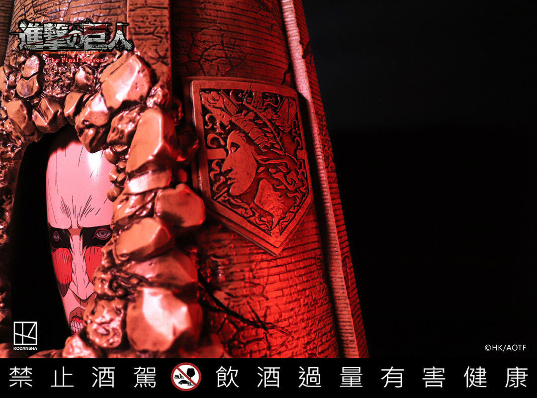 進擊的巨人-10週年造型紀念酒預購時間:2023年12月5日 11:00AM出貨時間:2024年6月依序發貨《進擊的巨人》年度巨作牆裂登場! 全球首款「進擊的巨人10週年造型紀念酒」 首次結合超大型巨人與台灣高粱酒 讓我們以造型紀念酒,為巨人完結感動乾杯!