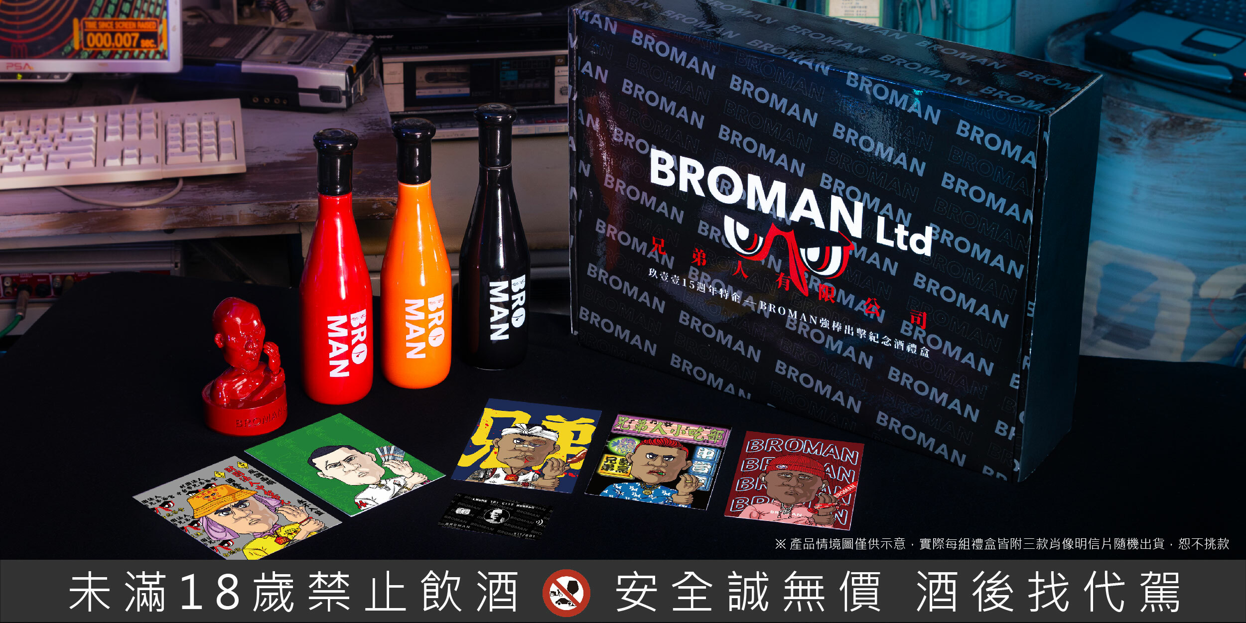 配件 ➢ 專屬外盒、BROMAN限量保證黑卡、BROMAN造型紙鎮公仔、三款肖像明信片(隨機出貨)